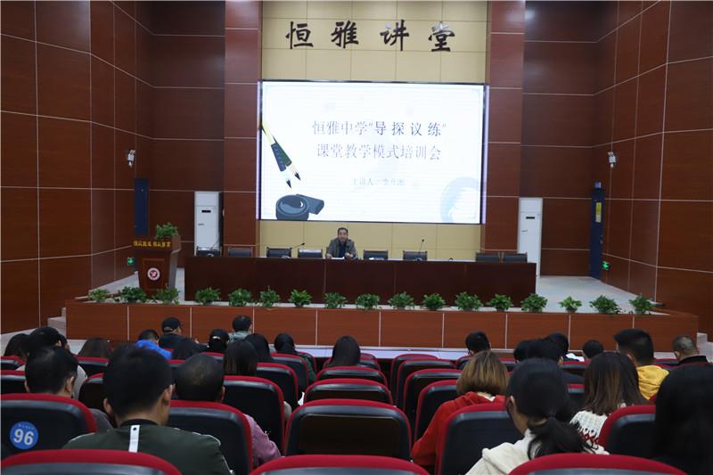 李校長在培訓會上向老師們介紹了“導、探、議、練”的含義、特點及操作方式。他說到建立恒雅“導、探、議、練”課堂教學模式的目的在于,讓我們的學生真正的“動”起來,讓我們的課堂“活”起來,讓我們的學生“聰慧靈動”起來。
