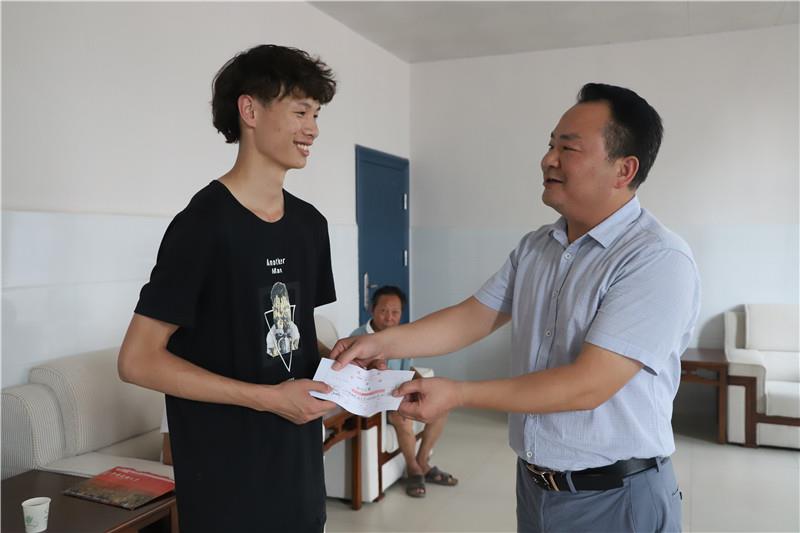 執(zhí)行理事長謝向前向吳林潔一家表示了祝賀和感謝,為該生送上5000元高考獎學金,并勉勵其再接再厲,刻苦學習,要牢記母校教誨,不負青春,為以后報效祖國、服務社會打下堅實的基礎。