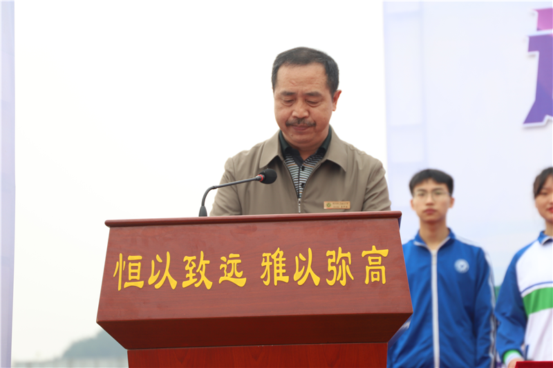 校長(zhǎng)李開湘先生為開幕式致辭,他指出生活、學(xué)習(xí)、工作,需要不斷提升智力、豐富的情感、健康的心理,更要有強(qiáng)健的體魄、充沛的精力和堅(jiān)韌的毅力。人與人的較量,是綜合能力的較量,而擁有強(qiáng)壯的體魄,是所有的基礎(chǔ)。希望同學(xué)們享受比賽,贏得快樂!