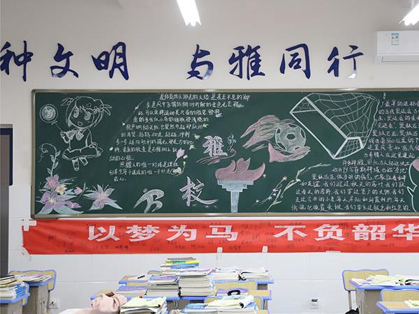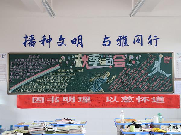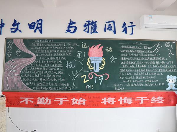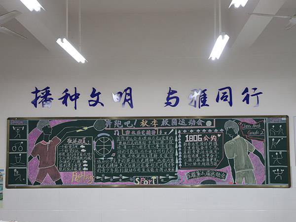 為貫徹《學(xué)校體育工作條例》,弘揚(yáng)體育精神,活躍學(xué)校體育文化生活,增進(jìn)學(xué)生、教職工身心健康,更好地展現(xiàn)恒雅師生的“精氣神”,學(xué)校舉辦了“運(yùn)動 健康 文明 快樂”為主題的第三屆校園體育節(jié)。在校辦公室、教務(wù)處、學(xué)生處、團(tuán)委精心策劃下,開展了以運(yùn)動會為主題的黑板報評比活動,一時間仿佛運(yùn)動會賽場上的一幕幕展現(xiàn)在了各班的板報上,活靈活現(xiàn)。各班同學(xué)充分發(fā)揮創(chuàng)造才能,密切配合,創(chuàng)作出了一幅幅繪畫精美、內(nèi)容充實的黑板報,令人大飽眼福!